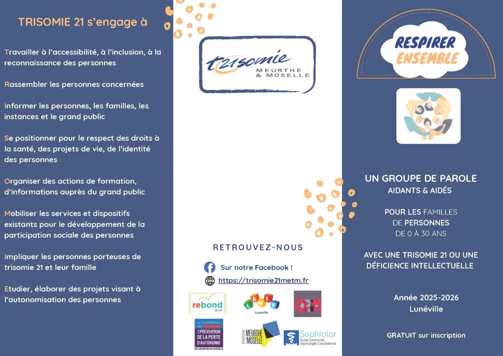 En réponse à l’appel à manifestation d’intérêt (AMI) en faveur des aidants lancé à l’été 2024 par la Conférence des financeurs du 54, le projet Respirer ensemble propose aux familles un temps de partage associant formation, échanges et détente. Calé sur l’année scolaire 2025-2026, il se développe sur 5 demi-journées composées de deux séries d’ateliers parallèles : pour les aidants, des interventions thématiques de professionnels suivies de débats, et pour les aidés, des approches de la maîtrise des émotions, accompagnées de part et d’autre d’une initiation à la sophrologie. Montée en collaboration avec le CAMSP de Lunéville, cette première édition s’adresse en priorité aux familles d’enfants et de jeunes adultes du Grand Nancy et du Lunévillois.