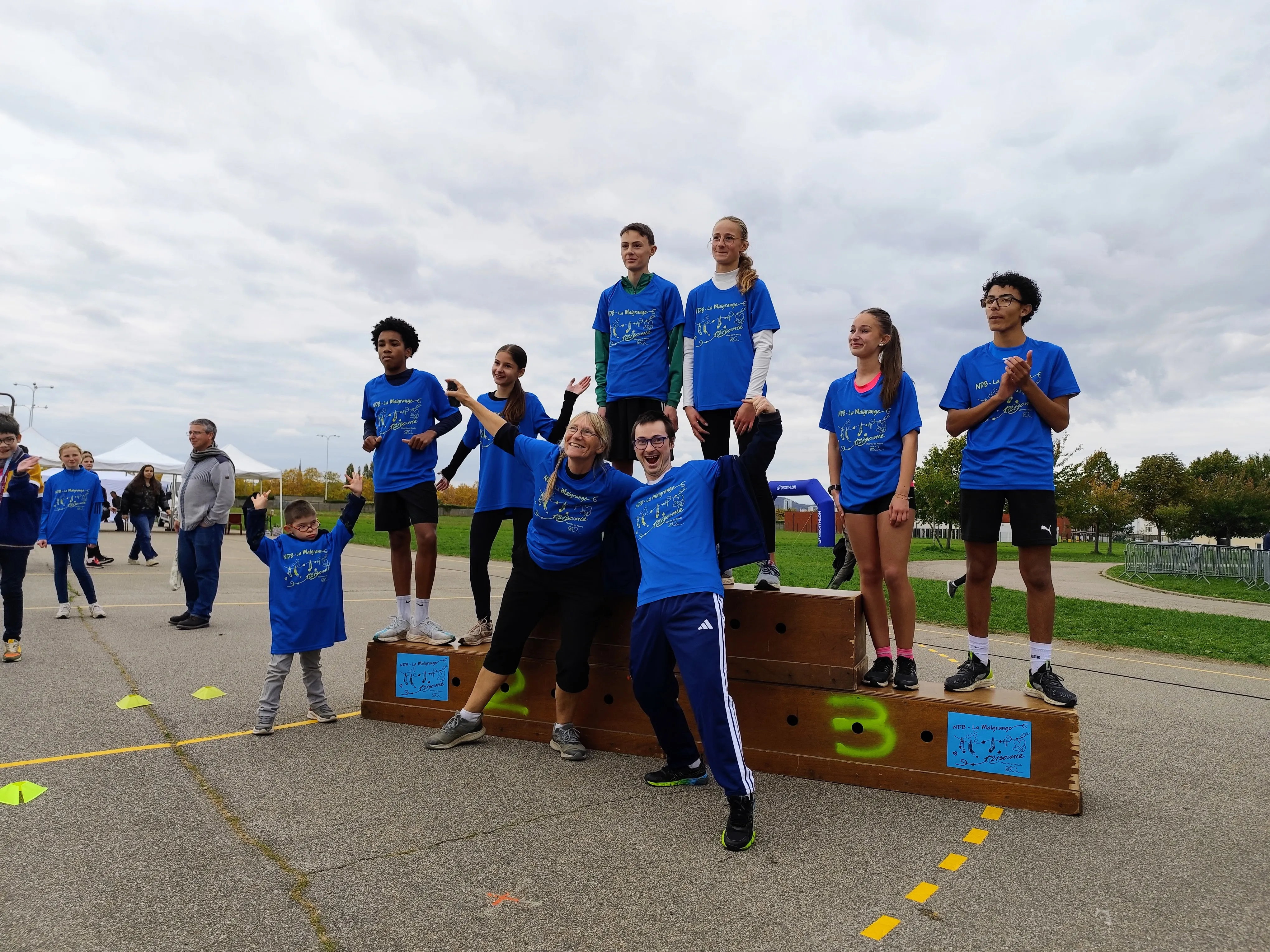 ![]() | L'établissement scolaire privé La Malgrange - Notre Dame de Bonsecours nous a fait l'honneur d'être choisi comme partenaire pour l'année scolaire 2025-2026. A ce titre nous participons à leurs événements caritatifs durant cette année scolaire. Le premier a eu lieu le 17 octobre 2025, pour ce cross, certaines personnes concernées ont courues aux cotés des élèves et enseignants de l'établissement en fonction de la course. Les personnes avec trisomie ont également eu le plaisir de remettre les T-Shirts flockés aux trois premier(e)s de chaque course. Merci pour l'accueil et à bientôt. |