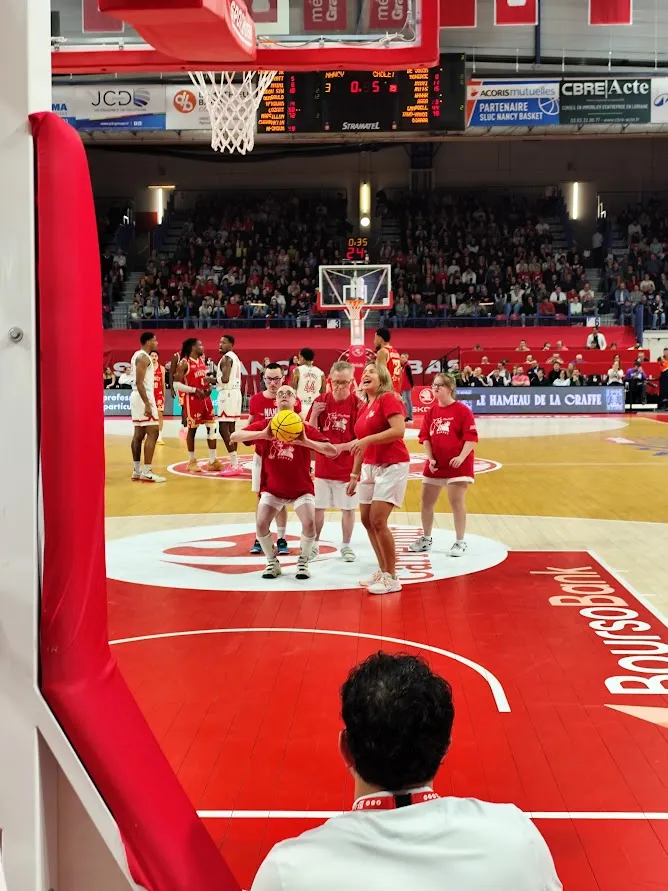 ![]() | Partenaire de longue date le SLUC Nancy Basket, nous a mis à l'honneur lors du match à domicile contre Cholet le 7 novembre 2025. Certaines personnes concernées ont pu faire des lancer francs lors d'un quart temps. Notre équipe locale a gagnée 91-87 comme chaque année lors du match où l'on vient les soutenir ! | |