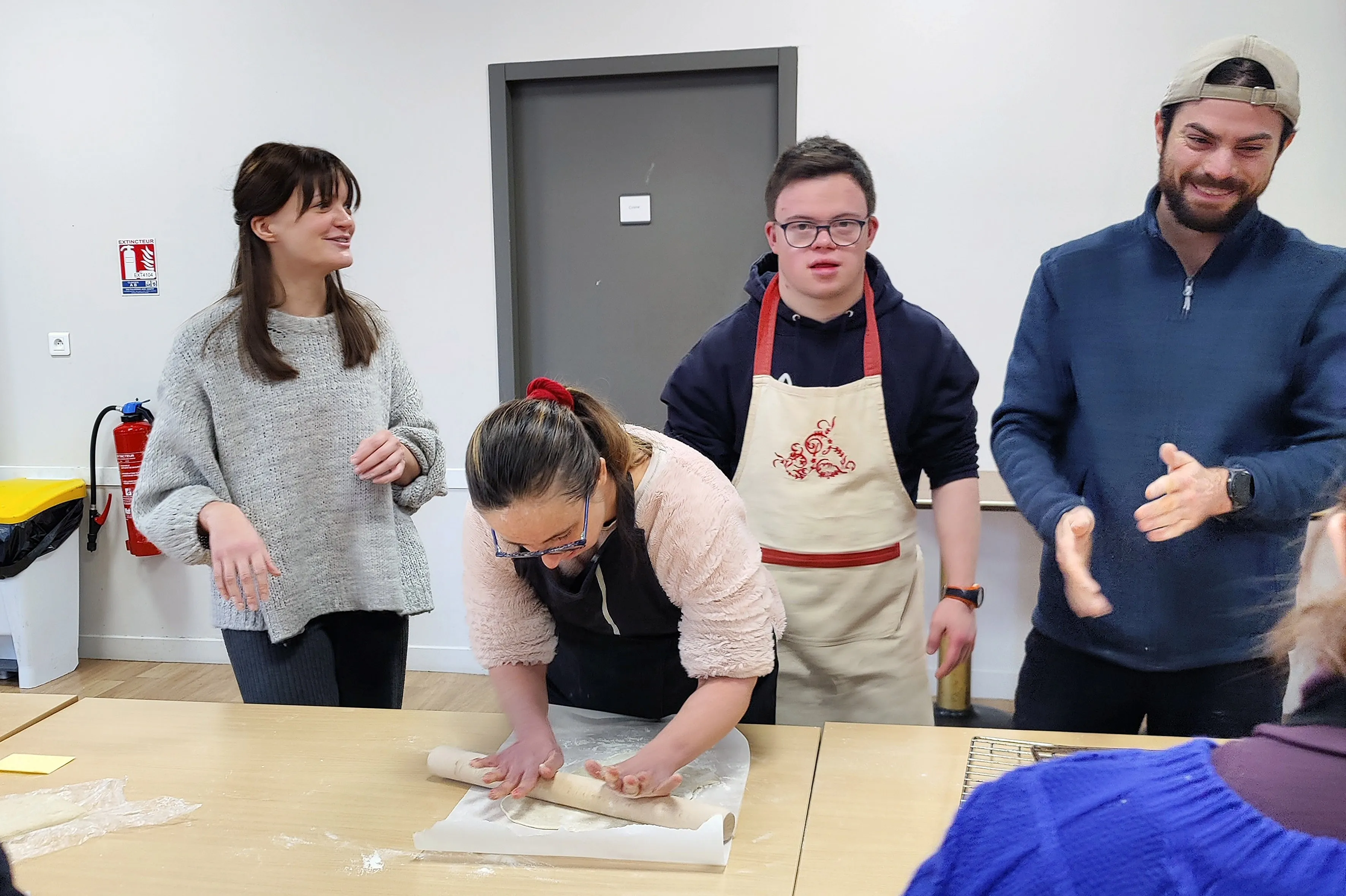 ![]() | 1er février 2025 - La traditionnelle galette des rois a pris cette année une dimension nouvelle avec la mise en place d’un atelier culinaire. Grâce à Quentin et Emma une dizaine de jeunes de l’association ont participé activement à la fabrication d’une douzaine de galettes dégustées dans la foulée par une soixantaine de bénévoles conquis. |
